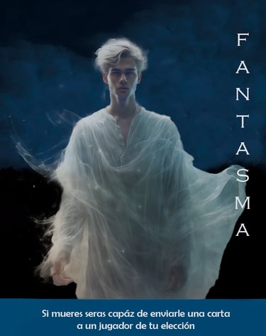 Si mueres, podrás enviar una carta escrita a un jugador de tu elección. Esta carta debe ser entregada por el máster y puede contener pistas, advertencias o cualquier mensaje que desees transmitir.