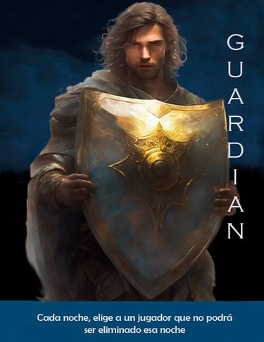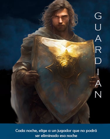 Cada noche, te despiertas cuando el máster te lo indique y eliges a un jugador para proteger. Ese jugador no podrá ser asesinado por los lobos ni afectado por habilidades de otras criaturas del equipo rojo durante esa noche.