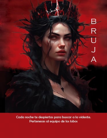 Cada carta pertenece a un equipo y tiene un rol único que puede influir en el rumbo de la partida. Ya sea que formes parte del pueblo, de los lobos, o tengas un objetivo especial... ¡conocer tu rol a fondo es clave para sobrevivir (o para ganar en las sombras)!