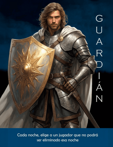 Cada noche, te despiertas cuando el máster te lo indique y eliges a un jugador para proteger. Ese jugador no podrá ser asesinado por los lobos ni afectado por habilidades de otras criaturas del equipo rojo durante esa noche.